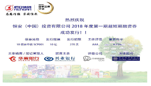 830日,尊龙集团(中国)投资有限公司发行2018年度第一期超短期融资券,发行金额10亿元,期限为270天,主体评级AAA。最终发行价格4.15%,全场申购22.8亿,申购比2.28倍。